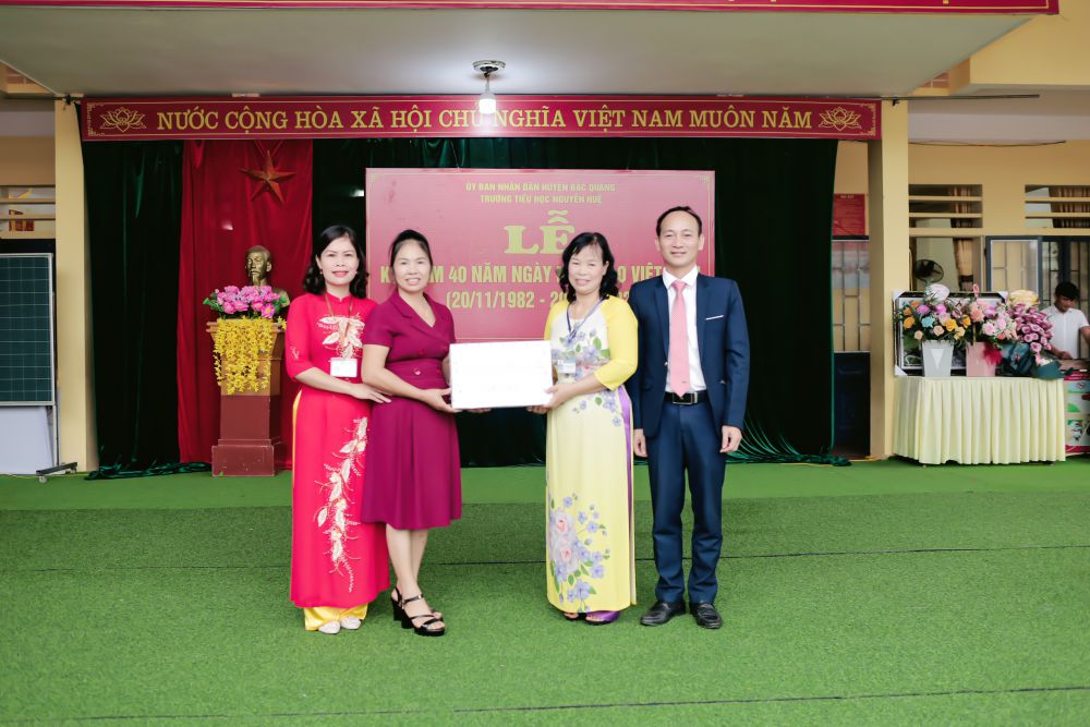 Sáng ngày 18/11/2022, trường TH Nguyễn Huệ đã long trọng tổ chức thành công lễ kỉ niệm 40 năm ngày Nhà giáo Việt Nam 20/11/1982 - 20/11/2022. Tới dự với buổi lễ có lãnh đạo Đảng ủy, HĐND, UBND, MTTQ thị trấn Việt Quang; Các Đ/C lãnh đạo các cơ quan ban ngành đóng trên địa bàn, các thế hệ nhà giáo, các bậc phụ huynh và các em học sinh đã đến dự và chúc mừng nhà trường.